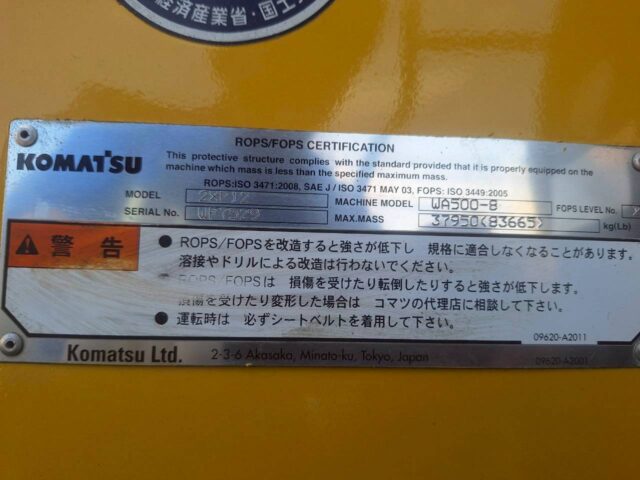 コマツ WA500-8 2017年 8,876時間 31,274㎞ バケット容量5.8m3