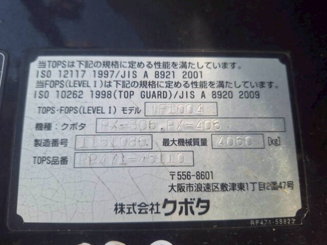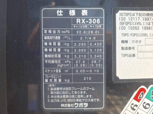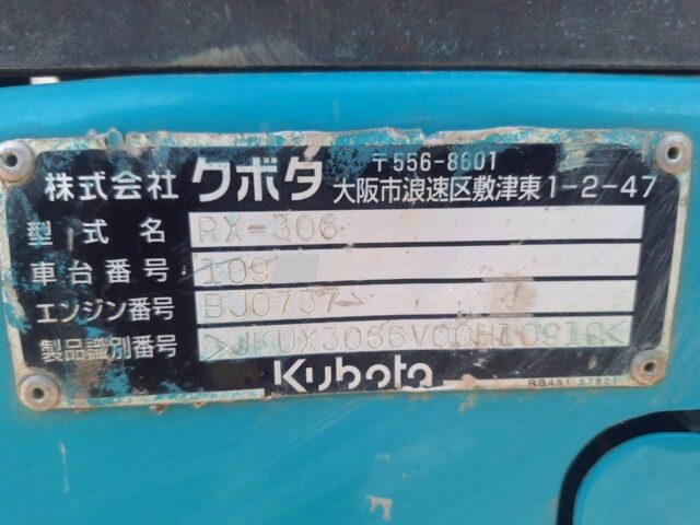 クボタ 油圧ショベル RX-306 2011年 2,760時間 0.09m3 0.9tクレーン オフセットブーム マルチ