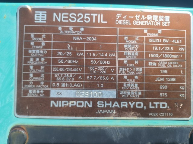 日本車両 発電機 NES25TIL G2002
