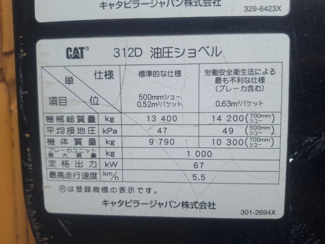 CAT 油圧ショベル 312D